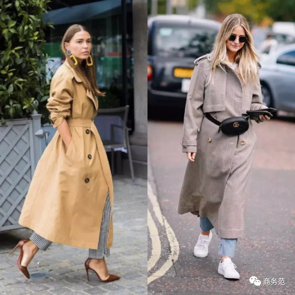 为风衣挑选内搭时,要记住的原则就是不要让内搭长过风衣,时髦精们无论内搭one piece还是上下叠穿,都懂得这个要领