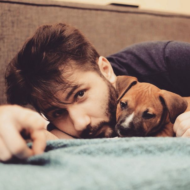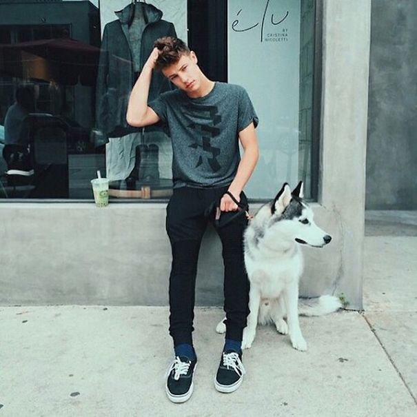 这个爱狗的妹子于是自己开了个“Hot Dudes With Dogs”(帅哥与狗)的Instagram账号,放上满屏帅哥和小狗的日常,一次满足贪心女人的两个愿望。