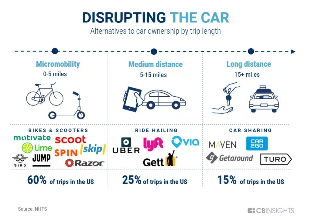 共享单车和共享电动滑板车增强了人们与公共交通网络的联系,填补了短途出行的空白。网约车仍然有增长空间,自动驾驶技术的引入会让它的效率在未来提升得更高。长途共享出行服务则让那些不想买私家车的人们也能方便地在城市之间通勤。