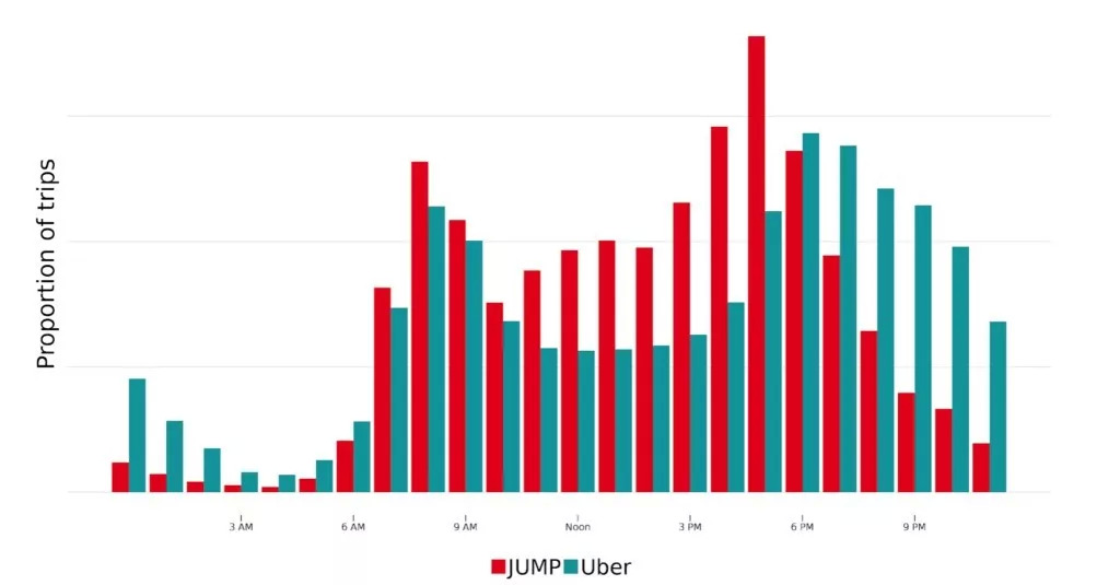今年7月的一份报告中,Uber表示人们在早晚出行高峰(上午8-9点钟,下午5-6点钟)更愿意使用Jump电动自行车而非Uber网约车,因为使用电动自行车+地铁等公共交通可以规避拥堵,效率更高。Uber看到了强劲的需求,它们已经收购了Jump,进一步扩展了自己在出行领域的版图。