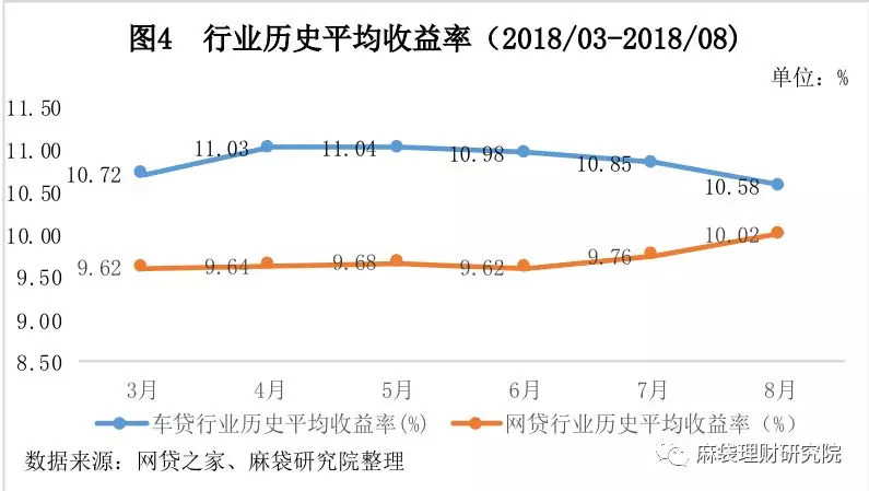 从体现网贷资金成本的历史平均收益率来看,车抵贷行业的整体收益率仍高于网贷行业综合收益率。相比之下,商业银行具有天然的资金成本优势,麻袋研究院从业内人士获悉,汽车金融公司的资金来源主要是银行借款,融资成本约为5%,融资租赁公司的资金成本约在6.5%,P2P车贷行业的资金成本相对较高,在10%左右。