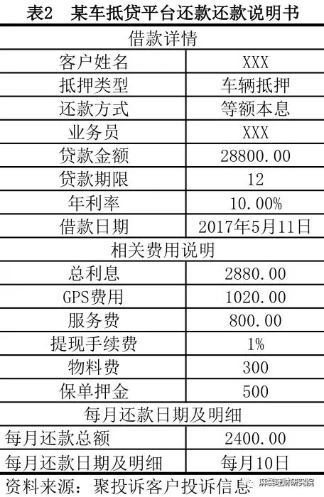 在向车抵贷平台申请汽车抵押借款时,签订的合约当中会事先约定GPS安装费、逾期罚息、服务费、提现费等。麻袋研究院从业内人士了解到,目前行业内GPS安装费从500元~1500元不等,拖车费用在3000元/次~5000元/次(根据距离收费),逾期罚息按借款逾期本息的1%收取。部分头部平台提现手续费高达借款本金的1%。另外,如果借款人逾期,平台拖车还要收取拖车费、差旅费等。