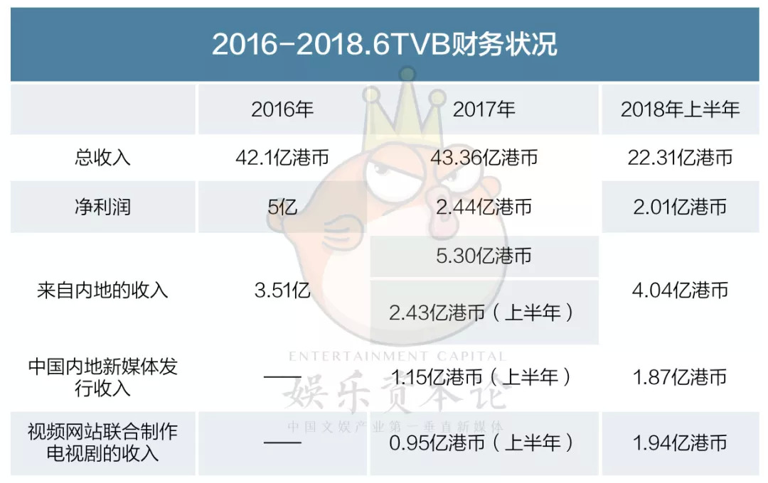 TVB和视频平台的合作确实拉动了它的营收。根据TVB 发布的2018年中期财务报告显示,TVB上半年的收入达22.31亿港币,其中与中国内地的新媒体发行及视频网站联合制作电视剧的收入分别录得63%及104%的升幅。