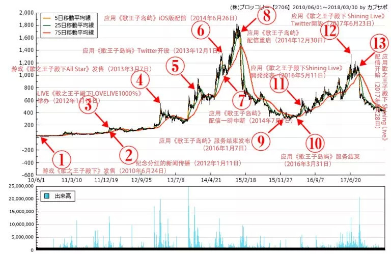 2011年动画版『うたの☆プリンスさまっ マジLOVE1000%』播出后,瞬间激发了女性们的爱心。受此大热影响,2012年2月末,Broccoli实施了《歌之王子纪念分红》的股票分红。平常2日元1股的分红,每一股增加了1日元50钱。这一消息爆出,女性粉丝竟然自觉领悟到“购买制作公司的股票也是为作品应援的手段之一”。于是,粉丝们选择了与其把钱存在银行,不如投资股票的应援方式。尽管Broccoli的股东并不全是《歌之王子殿下》的粉丝,但自此之后,《歌之王子殿下》的动向总会给Broccoli的股票带来不小的波动。