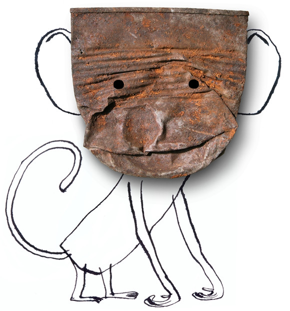 于是你看,旧罐头被压扁变成了猴子。
