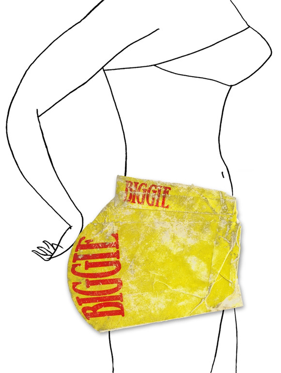 满是皱褶的包装纸成了性感女郎的热裤。