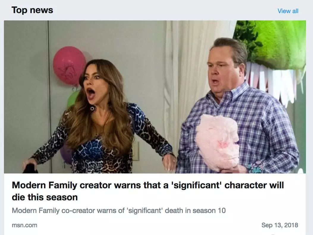 另据《摩登家庭》联合制作人Christopher·Lloyd透露,第十季上半部分将会有一个角色去世。