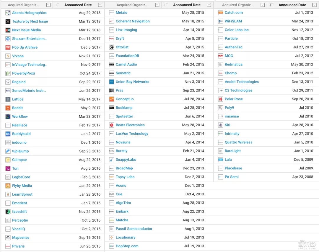 除了芯片公司之外,苹果收购的面部识别、AR、以及其他一系列AI公司可就更多了,这里不逐一点出来,只列几个有代表性的: