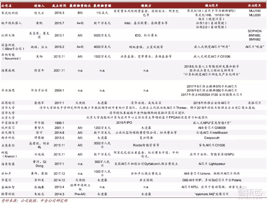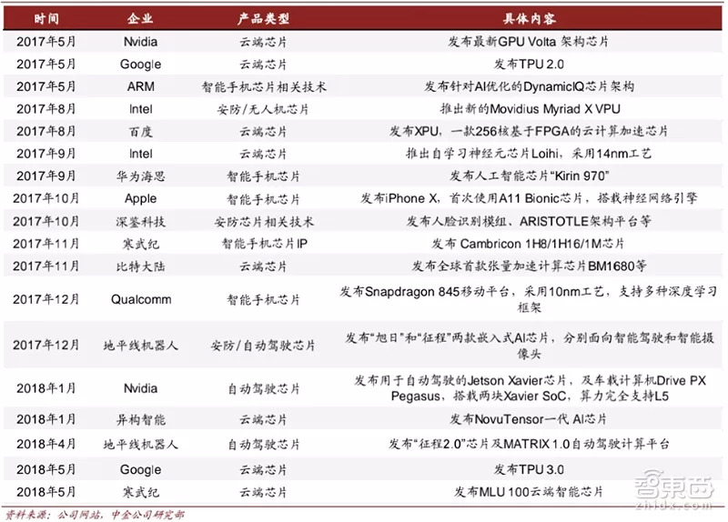 ▲2017年5月-2018年5月发布的AI芯片一览,数据来源:中金公司研究部