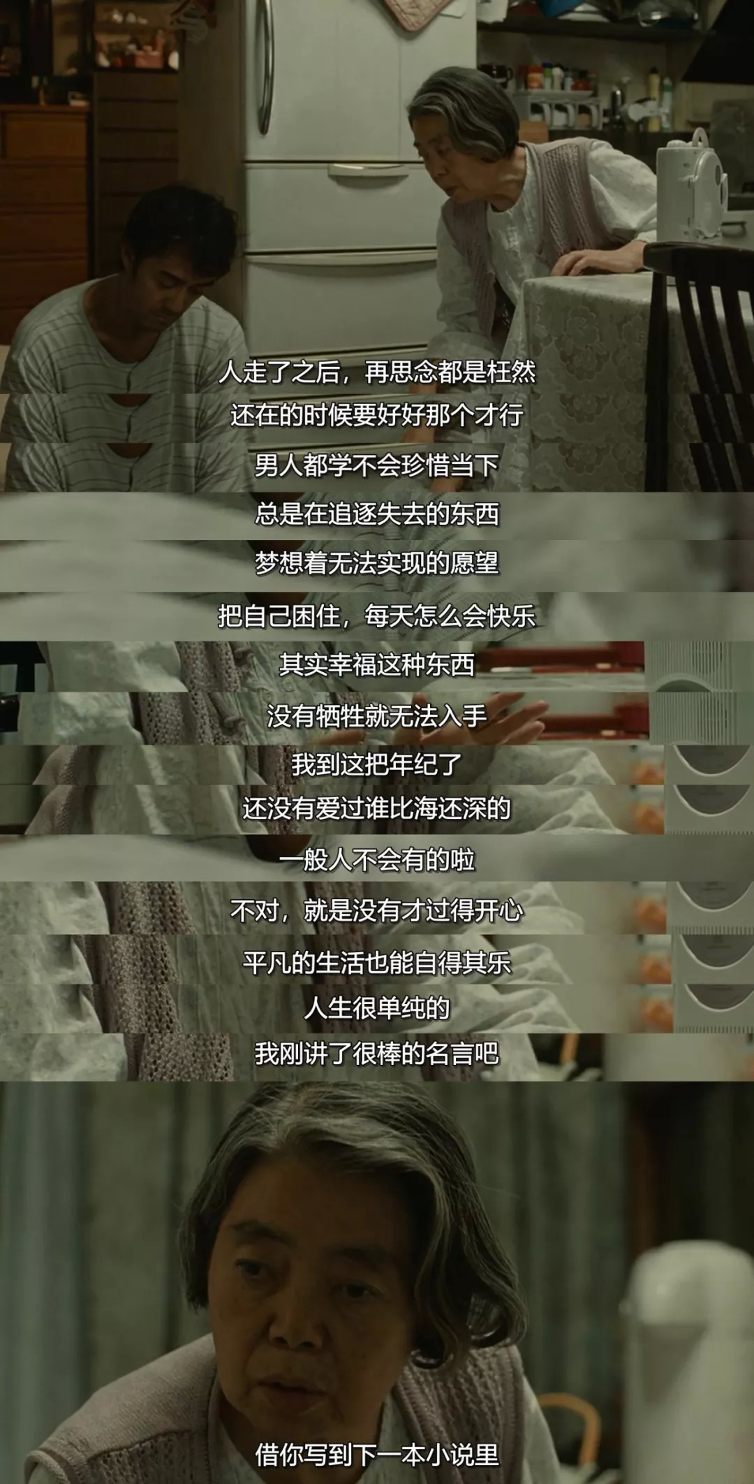 《比海更深》里,树木希林饰演的母亲不但幽默风趣,更是妙语连珠,处处透着一个豁达老人对生活的感悟良言。