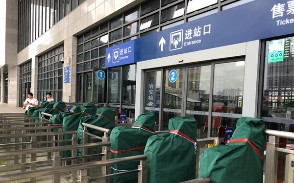 受台风“山竹”影响,9月16日至20日,广西玉林站多趟列车停运,购买停运列车车票的旅客可在票面发车时间30天内免费退票。此外,为应对台风“山竹”带来的台风雨,车站内的过机匝口用防水布遮盖避免被雨水淋湿,大门也用木条和麻袋进行加固。