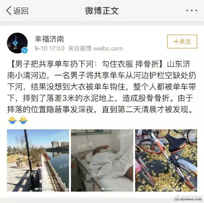 我不知道这位老哥作案的动机是什么,但是我估计等他从医院出来的时候,真的是这辈子都不想再看到共享单车了。