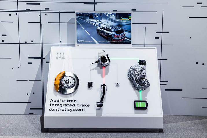 奥迪e-tron的另一项独家秘籍是“制动动力回收技术”,稍有汽车常识的人知道,制动动力回收并不是什么新技术的,但是奥迪将这项技术进行大规模升级,使得通过制动动力回收技术可将汽车的续航里程提高30%,