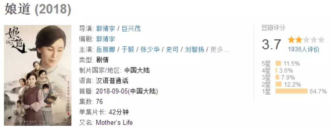 从某种意义上来说,用豆瓣评分来框定《娘道》,即便没有“黑水”,可能也不算公平。