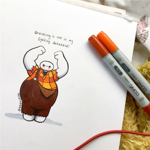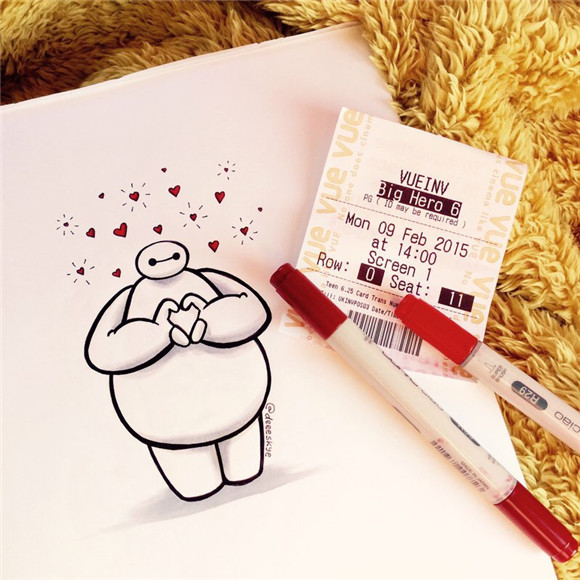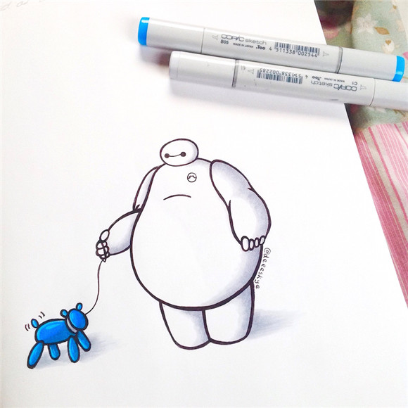 来自苏格兰的Demetria Skye是大白的超级粉丝。自从《超能陆战队》上映以来,她创作了满房间可爱的大白插画。