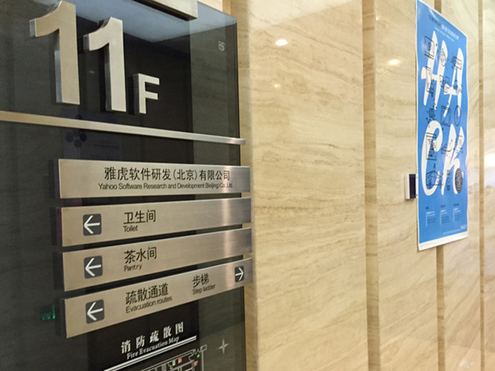 3月18日,雅虎正式宣布将关闭中国北京研发中心。图为大门紧闭的北京分公司,楼道的墙上还贴着2015年雅虎校园招聘的海报。