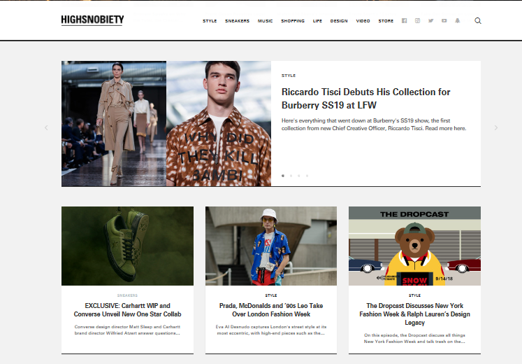 2005年,Highsnobiety在德国成立,目前在纽约、柏林和伦敦设有办公室。主要发布潮流趋势、潮流文化及潮流新品等信息。该网站发展较为稳定,自创立时已实现盈利,过去三年中的营收增长均超过100%。