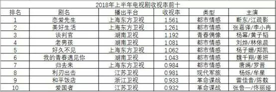 与其他卫视的诸种“扑街”现状相比,东方卫视上半年及暑期档的表现可圈可点,尤其在剧集方面有亮眼表现。2018年东方卫视已播出的电视剧几乎包揽上半年的收视top10,《恋爱先生》《美好生活》《好久不见》《归去来》《脱身》等都成绩不俗。