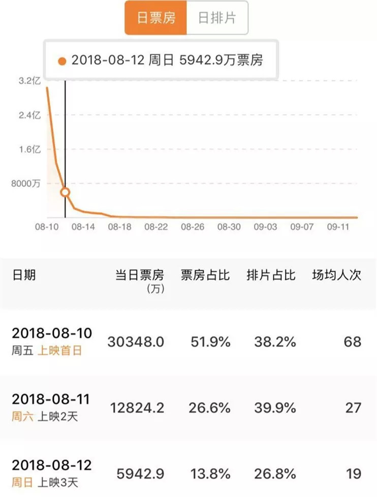 正因为如此,许多从业者们的经验也正在被不断颠覆。过去影片预售票房往往能够占到影片当日票房的50%或以上,而前期的预售、当天上座率等数据也会顺势成为影院排片的重要参考。可在今年暑期,预售时常只占当天票房的五分之一,像《爱情公寓》这样前期预售火爆、首日票房创纪录的影片,一旦口碑出现崩盘,影院方面依旧会很快就调整排片。