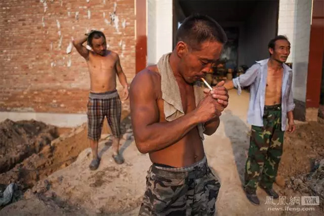 ▲ 2013年,凤凰网曾做过“7个农村单身汉”的图片专题,其中一位35岁名为“黑娃”的男子在村里帮着修房子干活,从早上6点干到到晚上7点,每天能赚100元。他的母亲、弟弟先后因故去世,父亲精神方面有障碍,为了照顾父亲,他没有办法外出打工。 © ifeng.com