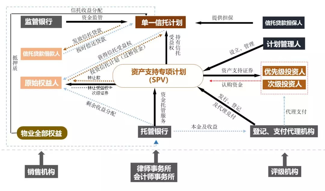 通常一个资产证券化产品,参与机构与职能有: