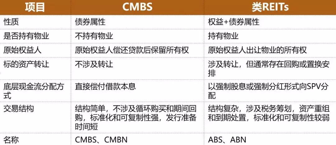 七、类REITs与CMBS的比较: