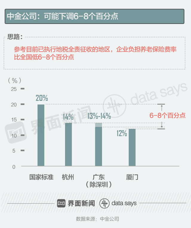 以费率最高的养老金为例,上述三个地区的费率要比全国低6-8个百分点。