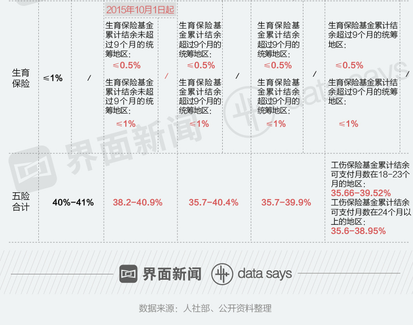 界面数据(公众号ID:tuli_shuju)梳理发现,2015年以来,人社部已先后4次降低或阶段性降低社保费率,社保费率从40%-41%降至约36%-39%。人社部今年4月公布的数据显示,4次降低社保费率已为企业减负约3150亿元。
