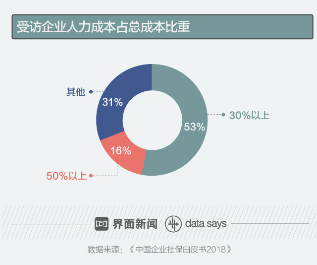 降社保费率,主要是为了减轻企业负担。《中国企业社保白皮书2018》数据显示,超过一半的企业人力成本占比在30%以上,16%的企业人力成本占比在50%以上。