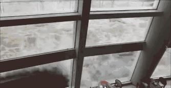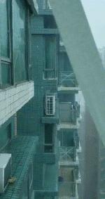 大楼被吹得摇摇晃晃。