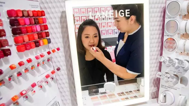 △一家商店展示了韩国品牌兰芝。去年,亚洲美容与个护产品的销售额增长6.4%