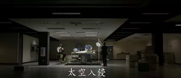 3、接下来的镜头是在一个解剖室,仔细看可以看到手术床上躺着的是一个绿皮肤的人,除了医生,还有一位守卫及一位穿着西服的高管模样的男人。