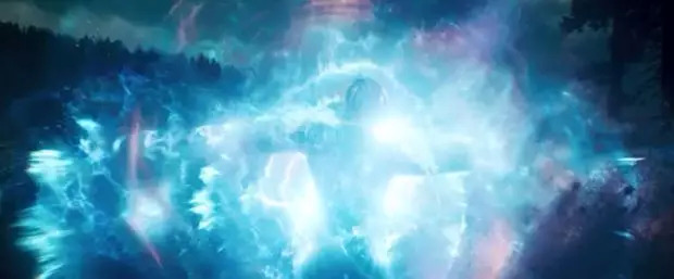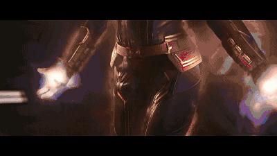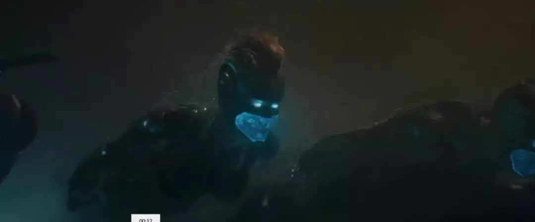不难看出,以下3个镜头中的女队和上图是身处同一个地点,并且确实是像前文所说,经历了机器爆炸,然后被一团蓝光包围,手部的特写也表示了能量注入体内的过程。