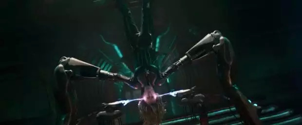 再回到刚才跌倒之后的镜头,此时女队已经穿上了克里星球精英部队Starforce的战袍,并被牢牢控制在一台奇怪的机器上,目前还不能推断这是在进行能力加强,还是洗脑,又或者是在女队有了反抗意图之后被克里人控制了。