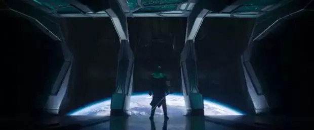 此时的罗南担任着克里军队的领袖,镜头中他应该是身处一艘飞船中,面前就是地球。