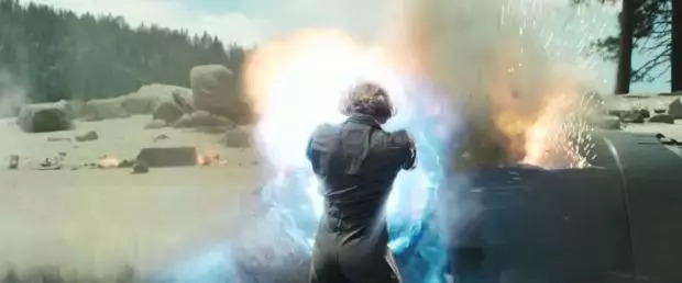 4、紧接着我们在扒火车的镜头中可以见识到女队具有的部分超能力,力量、速度,以及从双拳射出的光子能量冲击波。