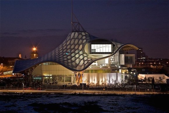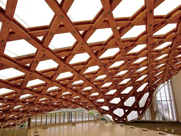 但你要是认为坂茂的才能仅限于临时住宅就大错特错了——2004年他成功竞标,与法国设计师Jean de Gastines共同设计的法国蓬皮杜梅斯中心(Centre Pompidou-Metz)。这是一座有着草帽形屋顶的漂亮建筑,利用不同大小的六角形来连接四边的横梁,这样便可以在整个室内空间内完全没有柱子的支撑,只有整个屋顶有4条柱子。该中心获得了巨大的成功,坂茂还和Jean de Gastines在巴黎联手成立了一家事务所。