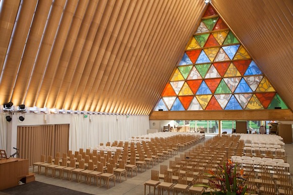 2013年8月,坂茂为新西兰南岛最大城市克莱斯特彻奇市(基督城)修建的纸教堂落成,被神父称为基督城“重建的象征”。这座教堂跟在2011年2月的大地震中被毁坏的具有100多年历史的天主教大教堂一样大小,可同时容纳700人集会,设计使用年限长达50年。