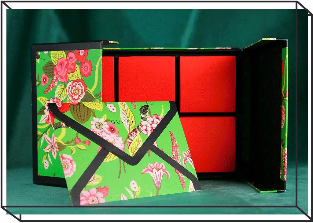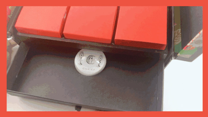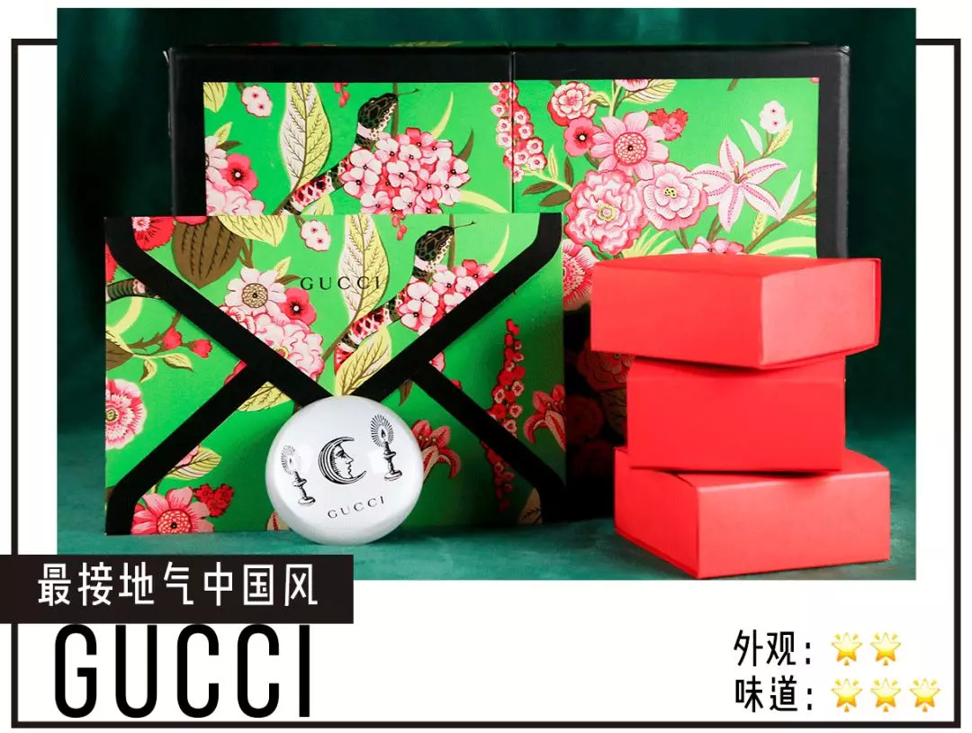 GUCCI的月饼一定是今年最中国风的了,礼盒外壳还是GUCCI家标志的花卉和珊瑚蛇图案,结果一打开,里头这大红色的月饼包装,就很……有节日的气氛
