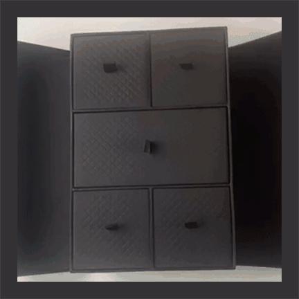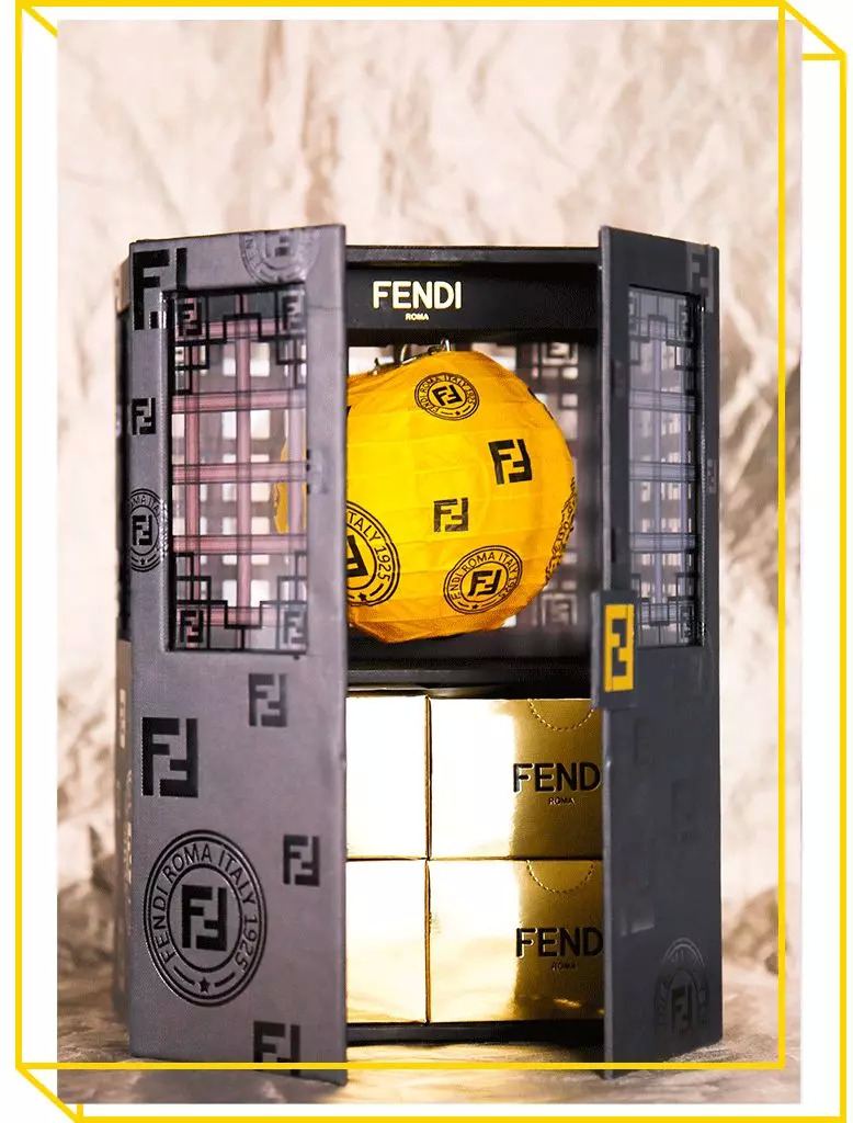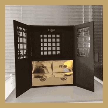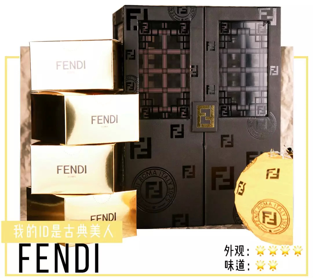FENDI的月饼盒古色古香的,很像一个中式古典风的衣柜,双开门打开,底下的小抽屉就是月饼了。