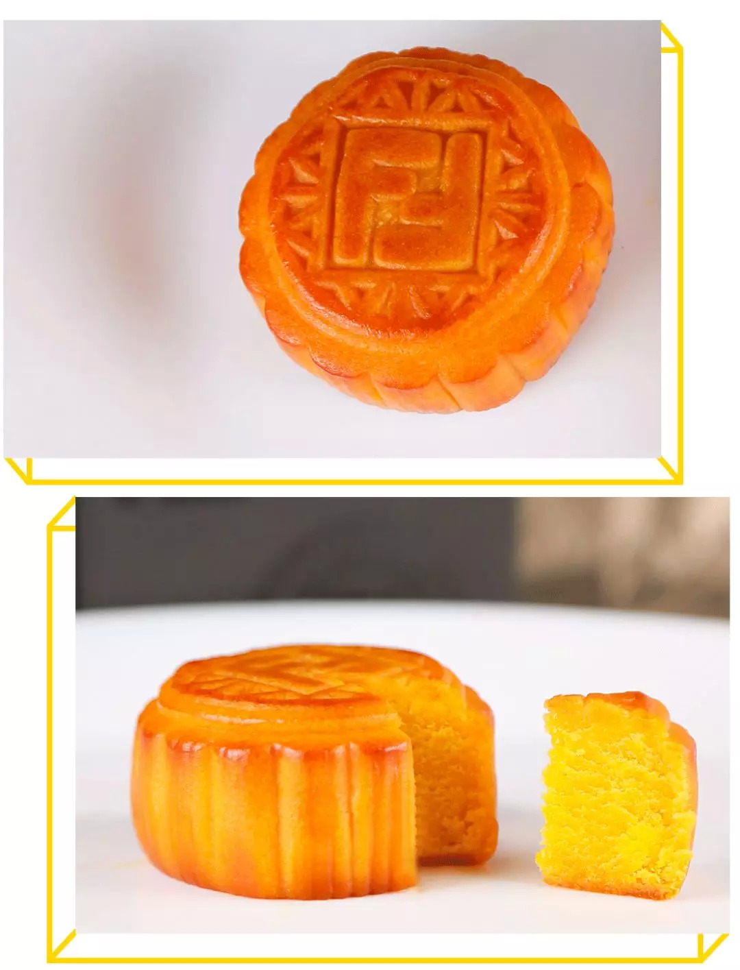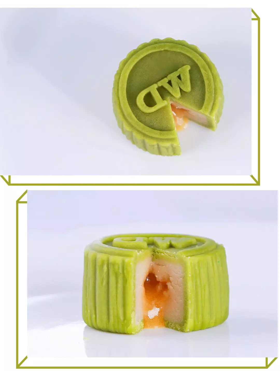 每边放了两块月饼,size小但扎实,有广式绿豆蓉、广式奶黄口味,不知道为啥,绿豆的月饼闻起来有一种青椒的味道,但是吃起来很好吃,绿豆味很浓,童叟无欺童叟无欺