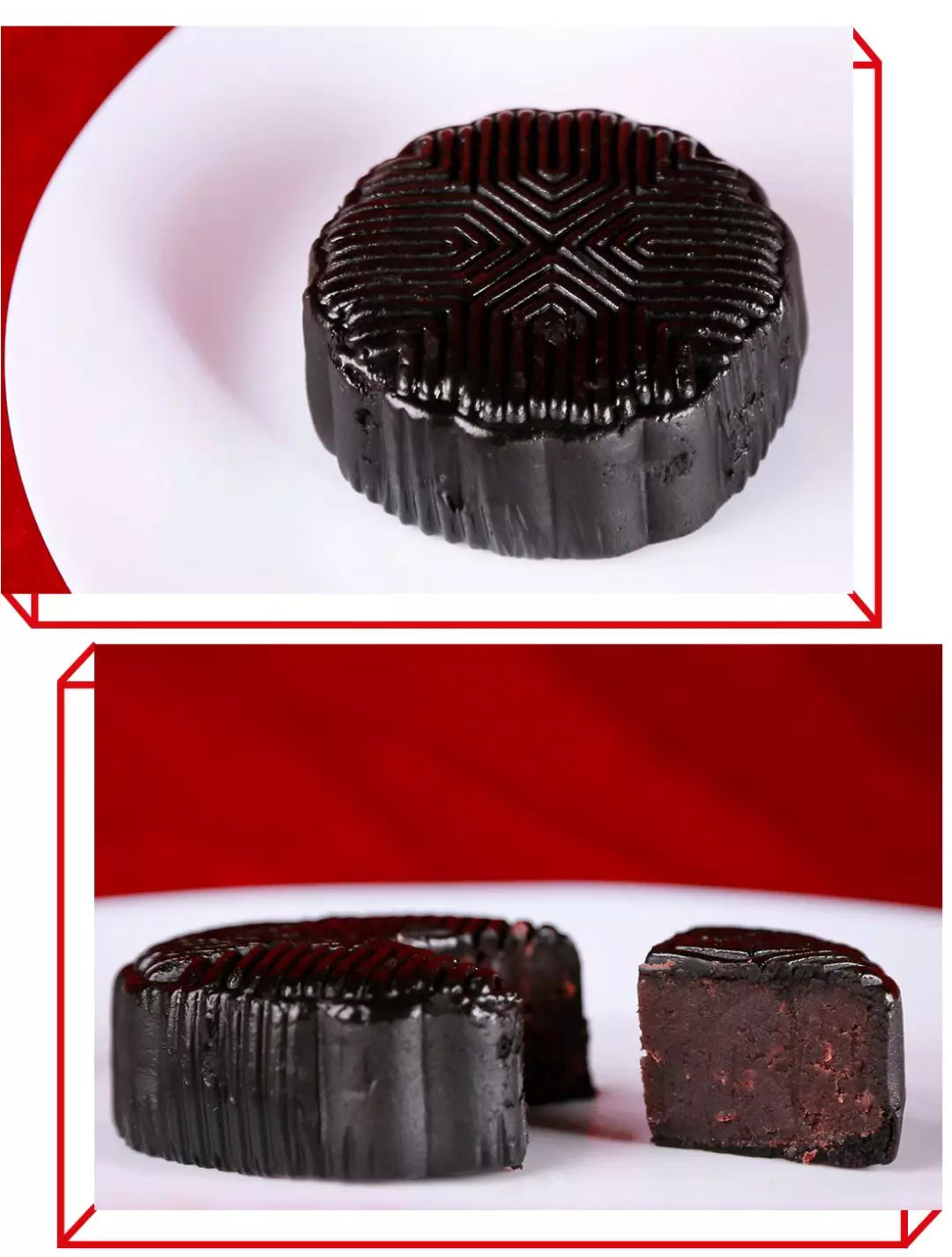 连月饼都是贼大一块,黑色的玫瑰豆沙月饼,感觉很适合全家人整整齐齐一起分享