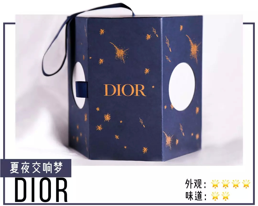 DIOR的月饼,是我这次的最爱NO.1。外形做成了灯的形状,深蓝色背景上画了星月图案
