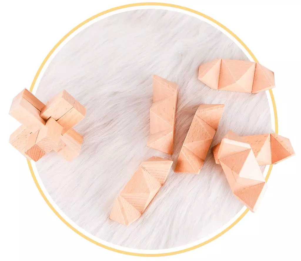 结果我一打开,里头居然放了四个鲁班锁,大概是智商在线的人,才配收到这个礼盒吧