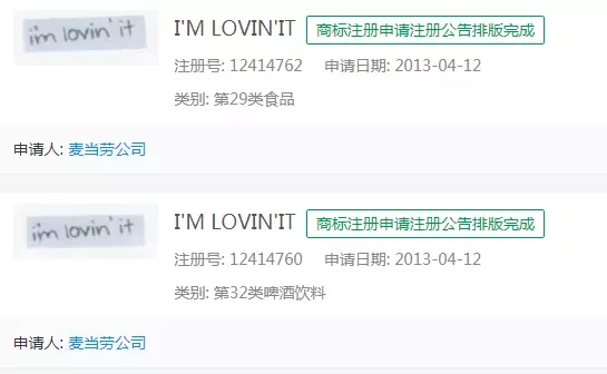 比如,麦当劳公司“I'lovin'it”商标在第43餐饮类早已成功注册。