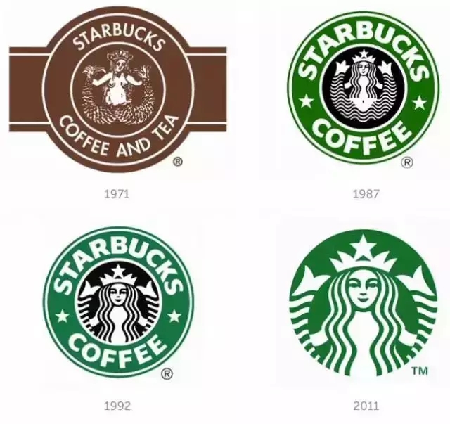 早在1971年,星巴克的人鱼logo中,她有赤裸乳房和一条双重鱼尾巴。2011年后,我们所看到的的星巴克人鱼logo已经是它根据社会发展和受众的消费习惯,进行的第4次改进和完善。
