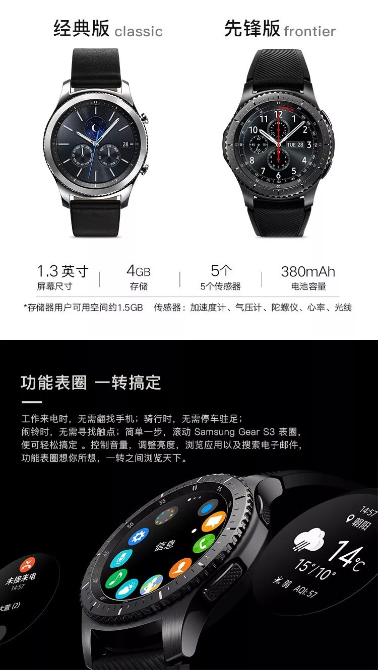 三星智能手表Gear S3,能够提供16个项目的运动模式,毫无疑问的安卓阵营智能可穿戴设备NO.1。甚至苹果引以为豪的瑜伽模式,也在一年前就已上线。