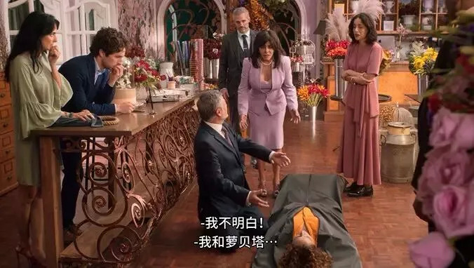 偌大的花园里随处可见华丽繁复的装饰,来来往往也是打扮光鲜的人们,让观众能直观地了解这是个家庭的非富即贵。
