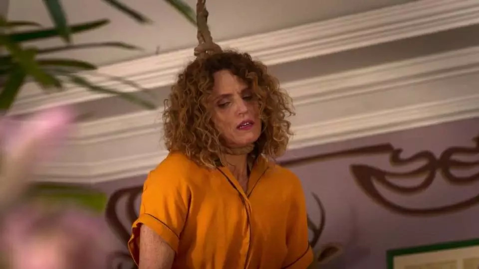 可还不等观众沉浸入这种富丽堂皇的氛围中,情况就急转直下,一个突然出现的女人在名为“花之屋”的花店里上吊自杀了。