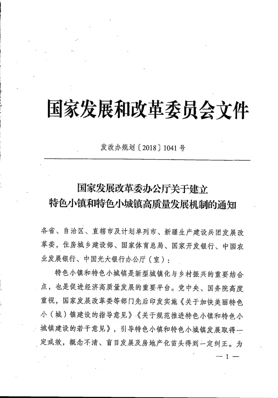 日前,国家发展和改革委员会发布《国家发展改革委办公室关于建立特色小镇和特色小城镇高质量发展机制的通知》(发改办规划〔2018〕1041号)文件,提出逐年淘汰不合格特色小镇,并搭建政银对接服务平台,引导金融机构为符合要求的小镇提供长周期低成本融资服务。